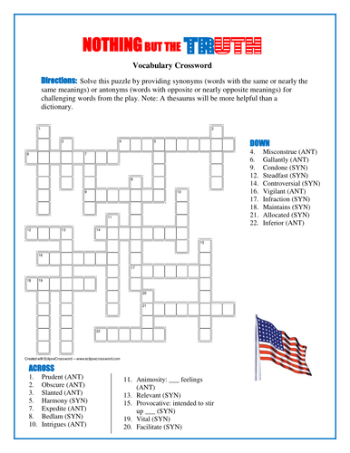 This crossword puzzle, " synonyms and antonyms, " was created using the crossword hobbyist puzzle maker